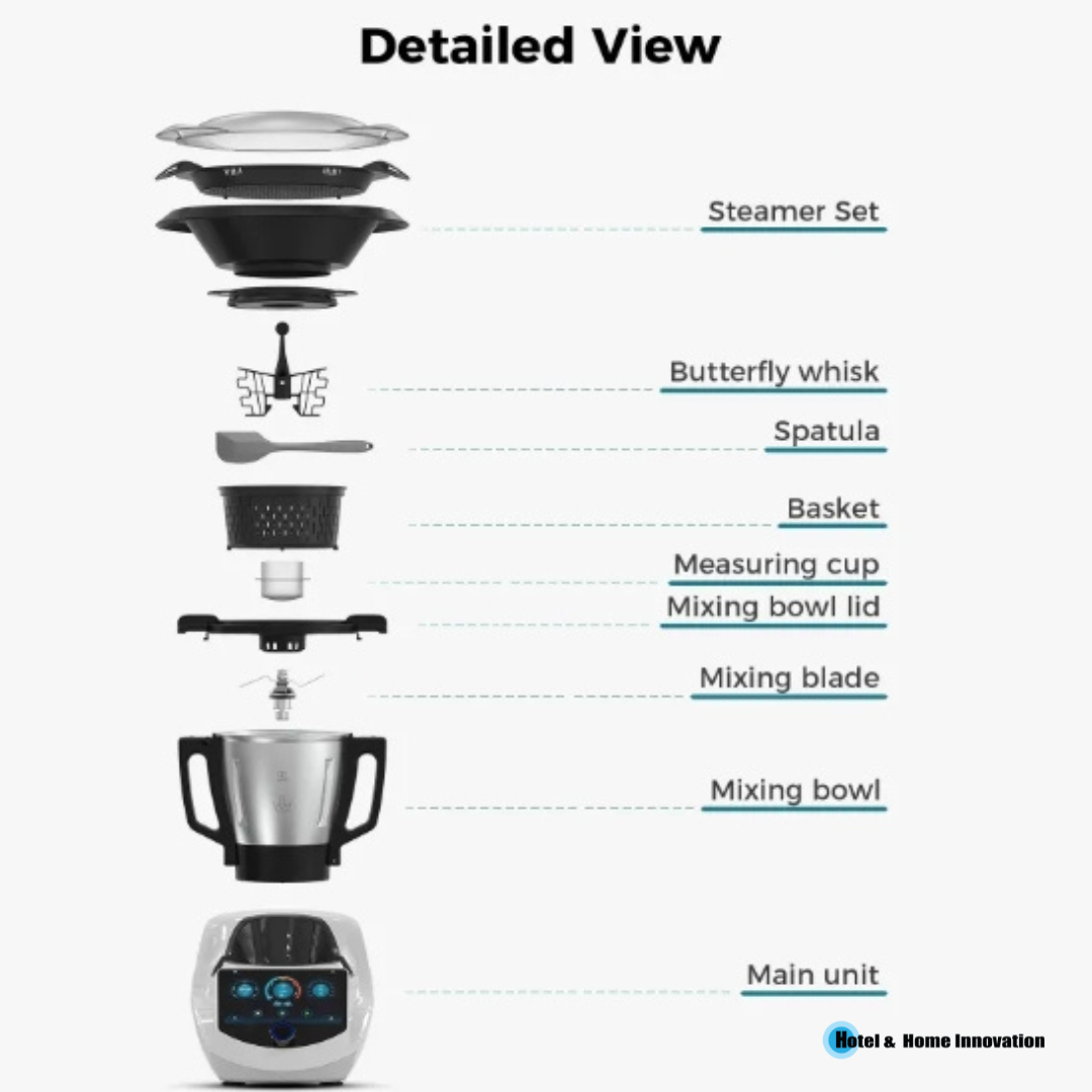 • Guided Cooking อัจฉริยะ – มอเตอร์กำลัง 500 วัตต์ ฮีตเตอร์ 1000 วัตต์ พร้อม หน้าจอสัมผัส 7 นิ้ว ใช้งานง่าย กำหนดเวลา อุณหภูมิ และความเร็วได้ตามสูตร